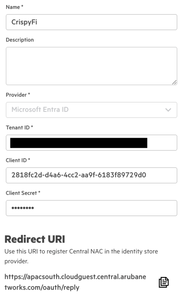 | Secret | <Client Secret Value from App Registration> |