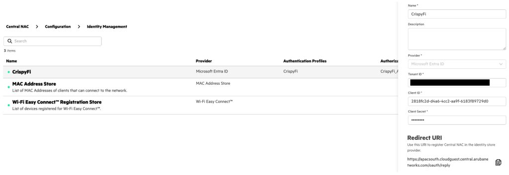 1. Navigate to Central NAC > Configuration > Identity Management and click Create Identity Store