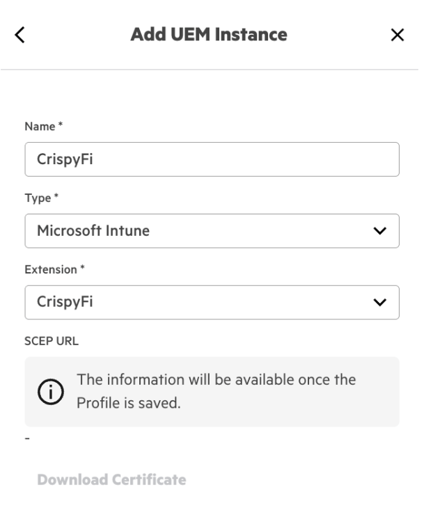 | SCEP Server URLs | <SCEP URL from UEM Onboarding Config> |
