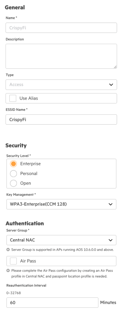 | Name | <WLAN Profile Name> |