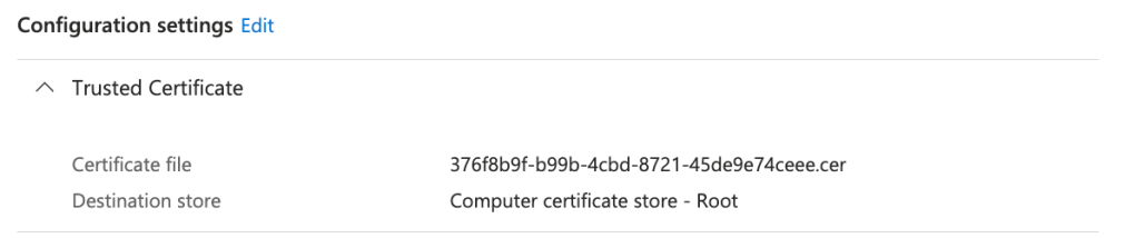 Microsoft Intune – Trusted certificate profile