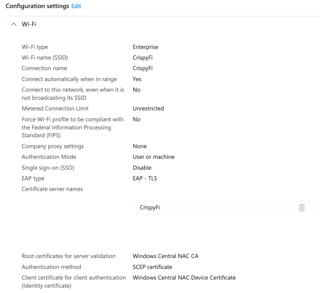Microsoft Intune – Wi-Fi profile