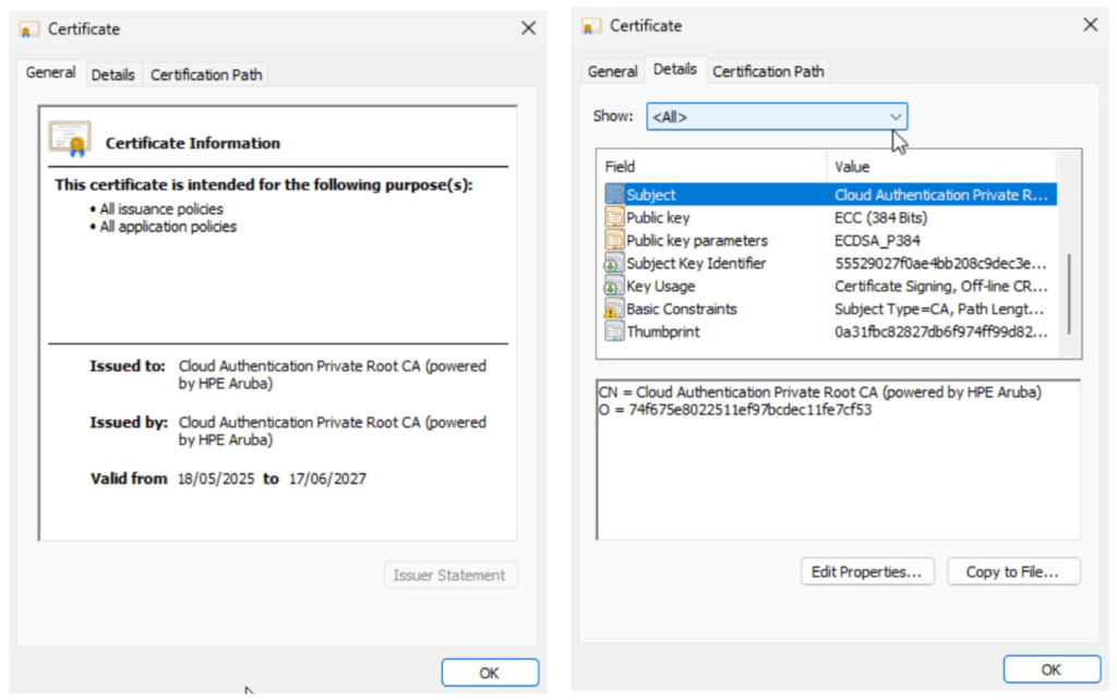 | Root Certificate | <Trusted CA Certificate Profile> |