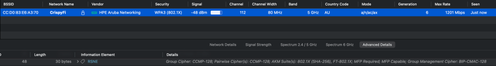 See below showing the 802.1X (SHA-256) (AKM 5) and FT-802.1X (AKM 3) for 802.11r capable clients.