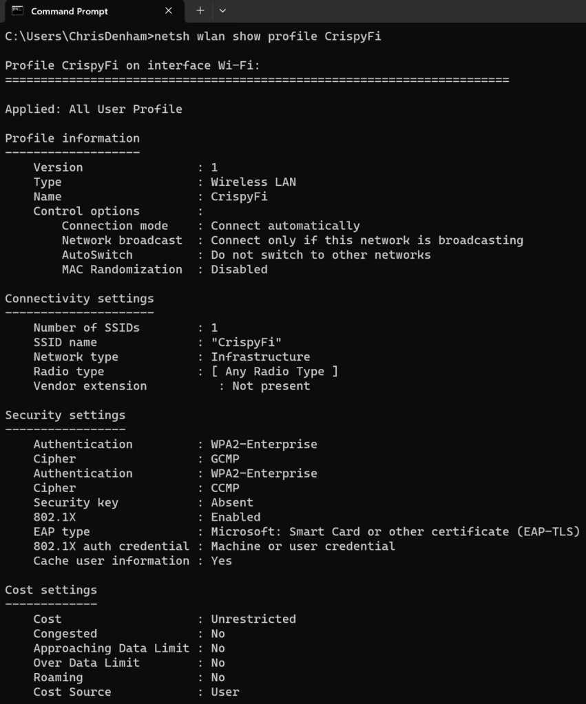 | EAP type | EAP-TLS |