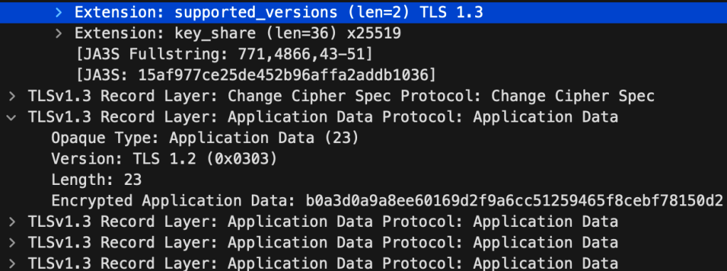 Central NAC is using TLS 1.3, which means the certificate exchange is encrypted: