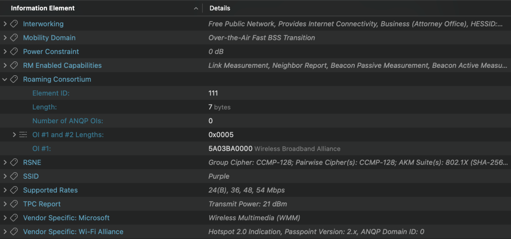 Your device will then automatically connect to any SSID that advertises the WBA RCOI (5A03BA).